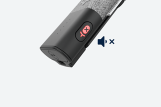 1. Press the mute button on the Clip. If the symbol is red, the Clip is muted. If the symbol is white, the mic is unmuted and your speech will be heard. When on the charging dock, the symbol will always be red as it is automatically muted while charging.